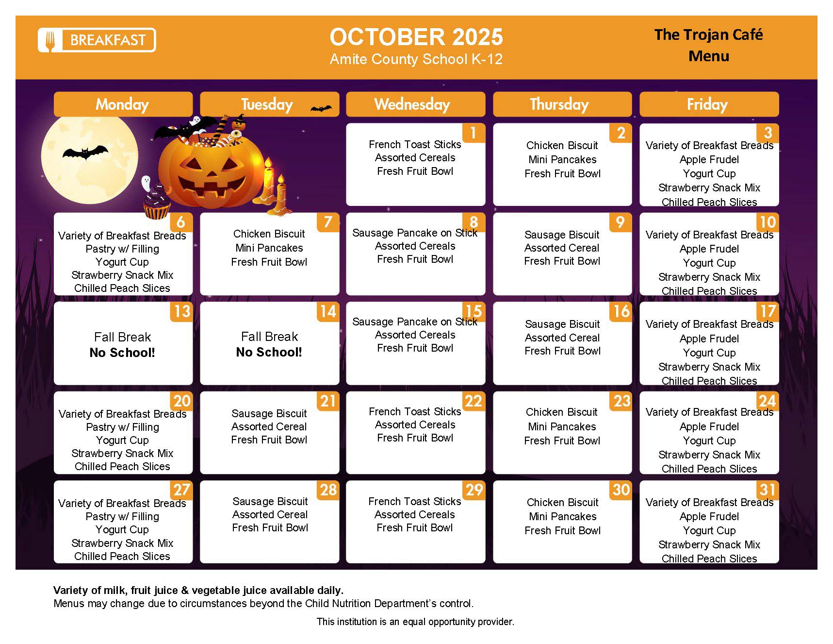 K-12 Breakfast Menu