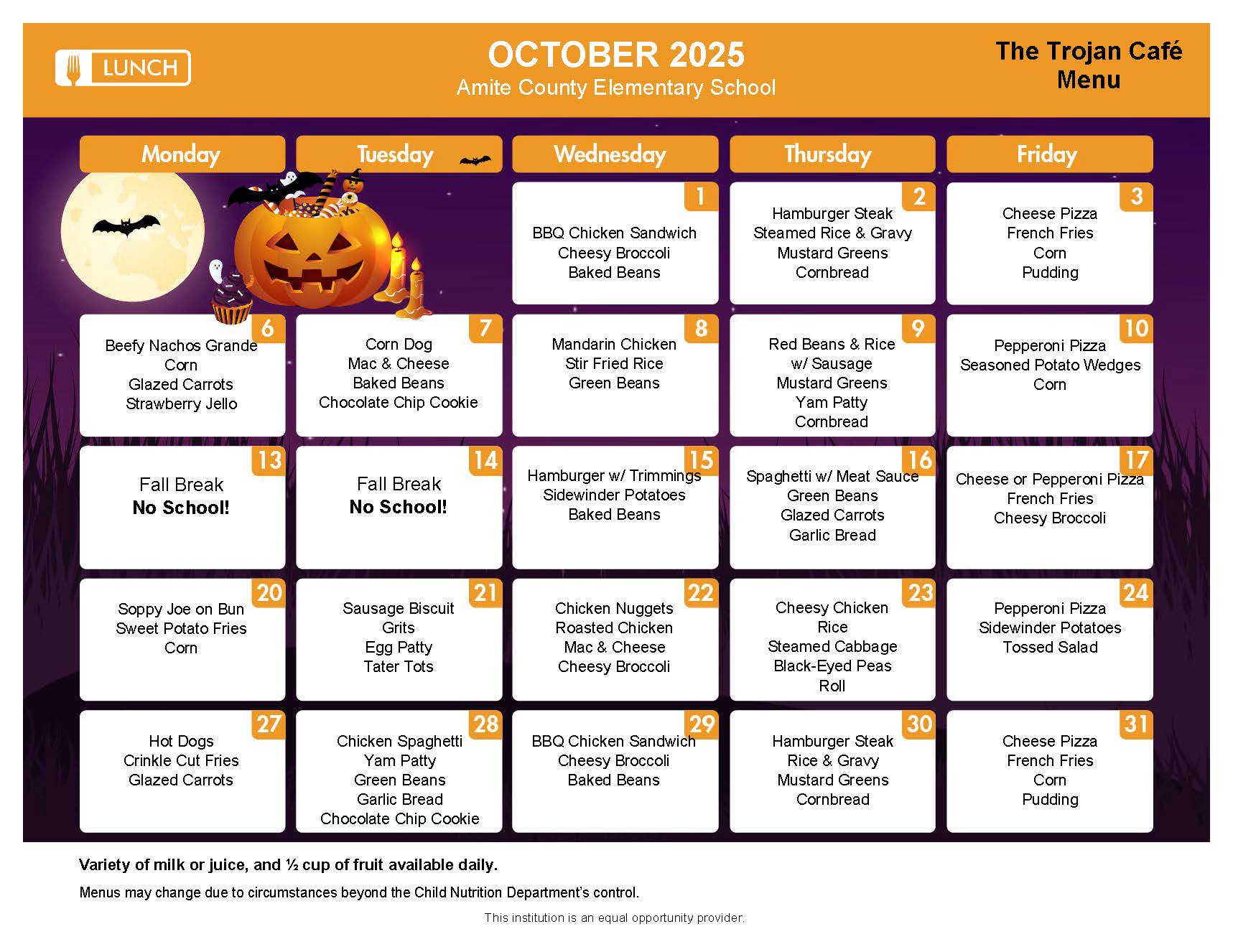 Elementary School Menu