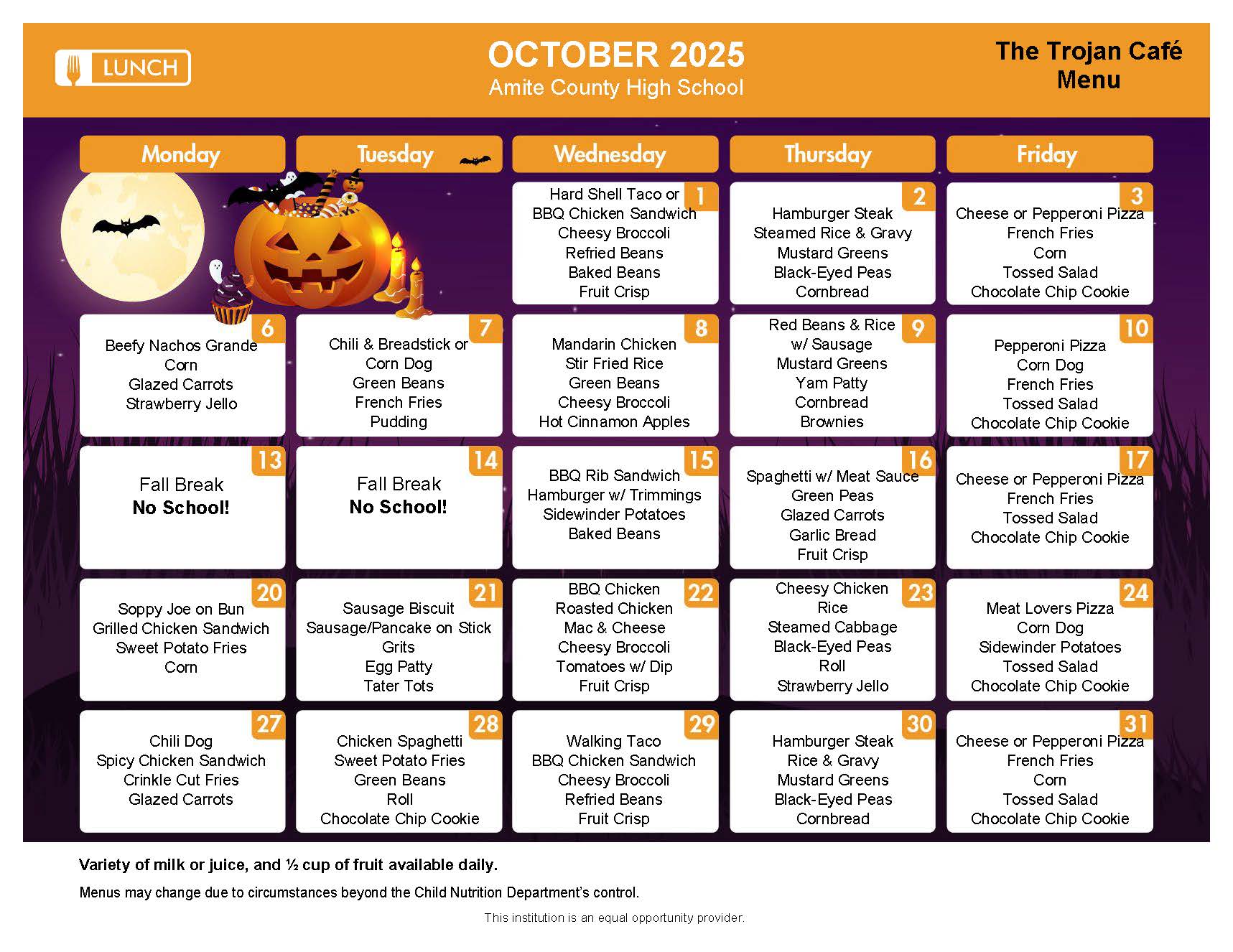 High School Menu